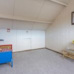 De vierde slaapkamer is heerlijk ruim, ligt over de volledige lengte van de woning, heeft een oppervlakte van circa 15 m² en bergruimte achter de knieschotten. Het is ook mogelijk om deze kamer op te splitsen in twee slaapkamers.