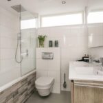 De luxe badkamer is in 2016 geplaatst en voorzien van een ligbad, dubbel wastafelmeubel, hangend toilet en spotjes. Prettig is het raam, welke zorgt voor natuurlijke ventilatie en lichtinval.
