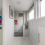 Overloop met toegang tot drie slaapkamers, badkamer en trapopgang naar de tweede verdieping.