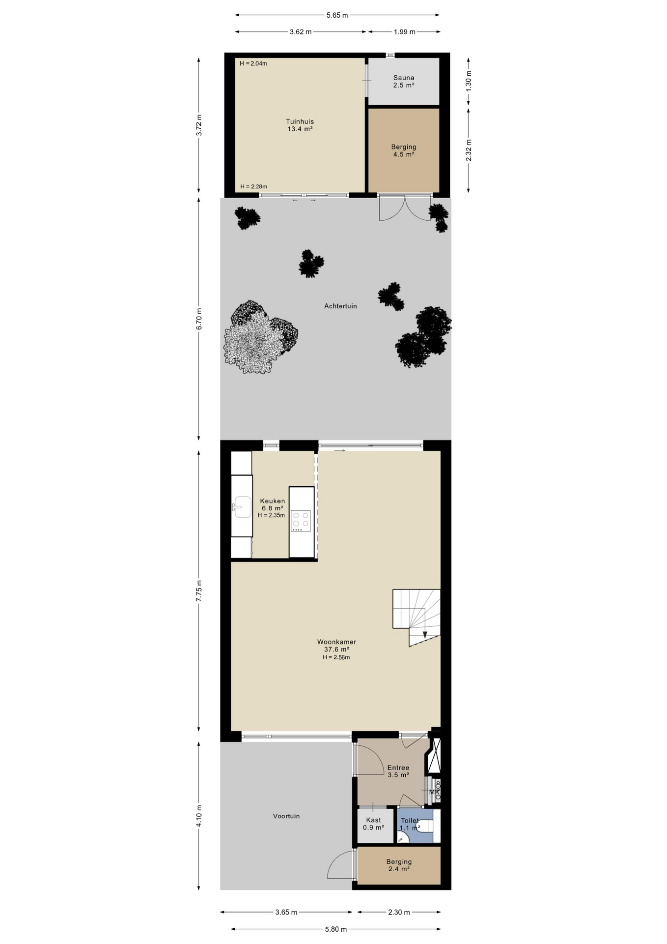 De tuin is gelegen op het noordwesten en voorzien van sierbestrating, kunstgras en een elektrisch zonnescherm. In 2023 is er een groot tuinhuis geplaatst achterin de tuin, hier kun je heerlijk vertoeven bij de open haard. Door de schuifpui in het tuinhuis betrek je buiten en binnen naadloos bij elkaar. Even relaxen in de sauna? Zelfs dat is mogelijk. Praktisch is dat er ook voldoende bergruimte beschikbaar is.