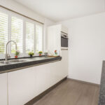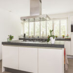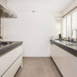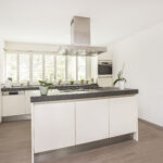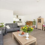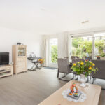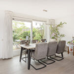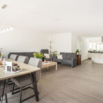 De tuingerichte woonkamer geeft een mooi uitzicht, door de grote schuifpui, over de achtertuin. Op de begane vloer ligt een plavuizenvloer in houtlook met vloerverwarming. Aan de voorzijde is de moderne keuken gesitueerd. De keuken met kookeiland is voorzien van een gaskookplaat, afzuigkap, koelkast, vrieskast, vaatwasser en combimagnetron. Prettig zijn de grote ramen en de mogelijkheid tot natuurlijke ventilatie.