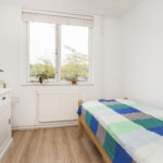 De ruime slaapkamer van circa 16 m² groot is voorzien van een dakkapel en een laminaatvloer.