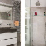 De overloop geeft toegang tot drie slaapkamers, de badkamer en toiletruimte. De grootste slaapkamer met balkon is circa 13 m² groot en gelegen aan de voorzijde van de woning. De tweede slaapkamer is circa 10 m² groot, de derde slaapkamer is circa 7 m² groot. De slaapkamers zijn voorzien van een laminaatvloer en spachtelputz wanden. De badkamer beschikt over een ligbad, douche, wastafel en een radiator met vloerverwarming. Fijn is hier het raam welke zorgt voor lichtinval en natuurlijke ventilatie.