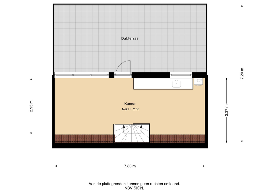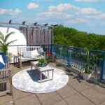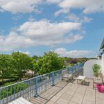Het grote dakterras is volledig betegeld, heeft een mooi vrij uitzicht, een zonnescherm en is met een oppervlakte van circa 30 m² zeer riant te noemen. Met een ligging op het zuidoosten heb je hier de hele dag zon en kun je hier urenlang goed vertoeven.