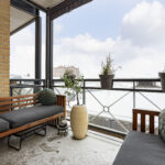 Balkon met uitzicht op winkelcentrum Vleuterweide
