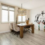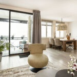 Vanuit de woonkamer bereik je het balkon, een fijne plek om buiten te zitten en te genieten van het levendige uitzicht op Vleuterweide.