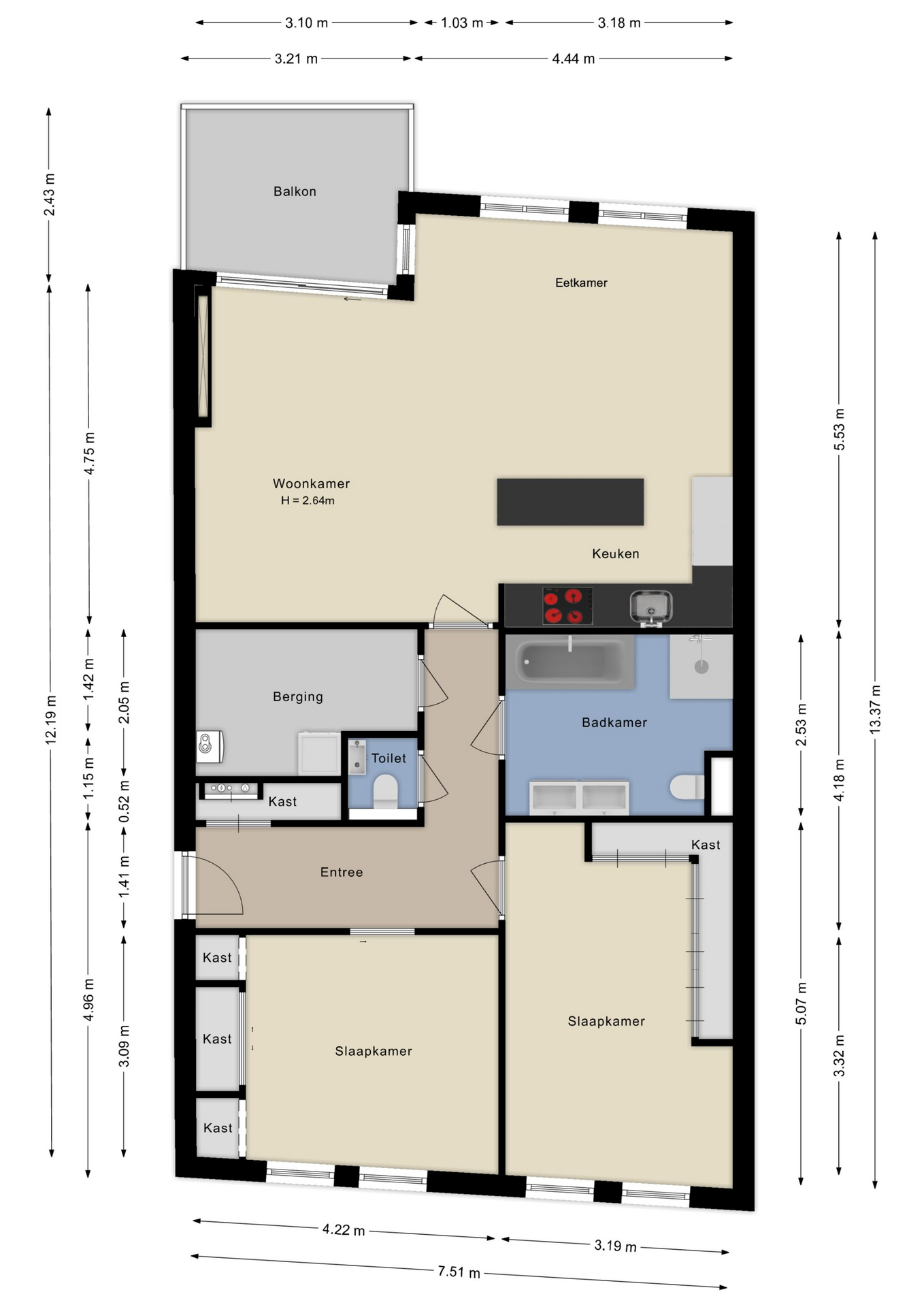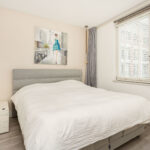 Het appartement beschikt over twee goed bemeten slaapkamers, ideaal als hoofdslaapkamer en bijvoorbeeld een werk-, kinder- of logeerkamer. De badkamer is ruim en netjes afgewerkt en voorzien van een ligbad, douche, wastafelmeubel en tweede toilet. Daarnaast is er een separaat toilet en een praktische inpandige berging met ruimte voor de boiler, wasmachine/droger en extra opslag.