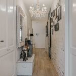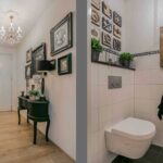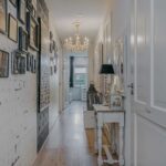 Eenmaal door de voordeur is de brede L-vormige gang te vinden. Deze geeft toegang tot alle vertrekken van het appartement. Bij binnenkomst is aan de rechterkant de meterkast, de toiletruimte met zwevend closet en fonteintje, berging met de opstelling van de warmtepompboiler en de witgoedaansluitingen te vinden.