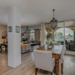 De living is met een afmeting van circa 64m² zeer royaal. De karakteristieke toogramen die een uniek uitzicht geven op het centrum springen direct in het oog. Het grote buitenverblijf omarmt door zijn U-vorm het hele appartement. Een heerlijke plek om zelfs als het regent te vertoeven. Van hieruit is van alles te zien; de bedrijvigheid van het winkelcentrum, de gezellige terrasjes en het vrije uitzicht over het water. De living is verder voorzien van twee schuifpuien waardoor je binnen en buiten met elkaar in verbinding kunt brengen.