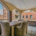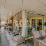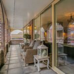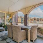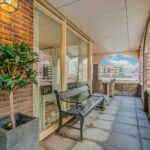 Het grote en overdekte buitenverblijf is maar liefst 46m² groot en ligt in een U-vorm om het appartement heen. De mooie brede vensters met togen maken dit een bijzondere plek, waar altijd wat te zien is.
