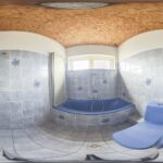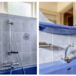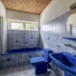 De eerste verdieping biedt een badkamer met ligbad, toilet en wastafel – uitgevoerd in klassiek blauw. Daarnaast zijn er vier slaapkamers, elk met hun eigen sfeer, originele details én... ruimte voor verbetering. De afwerking is gedateerd, er is enkel glas en er zijn zichtbare sporen van ouderdom – perfect voor wie de handen uit de mouwen wil steken!