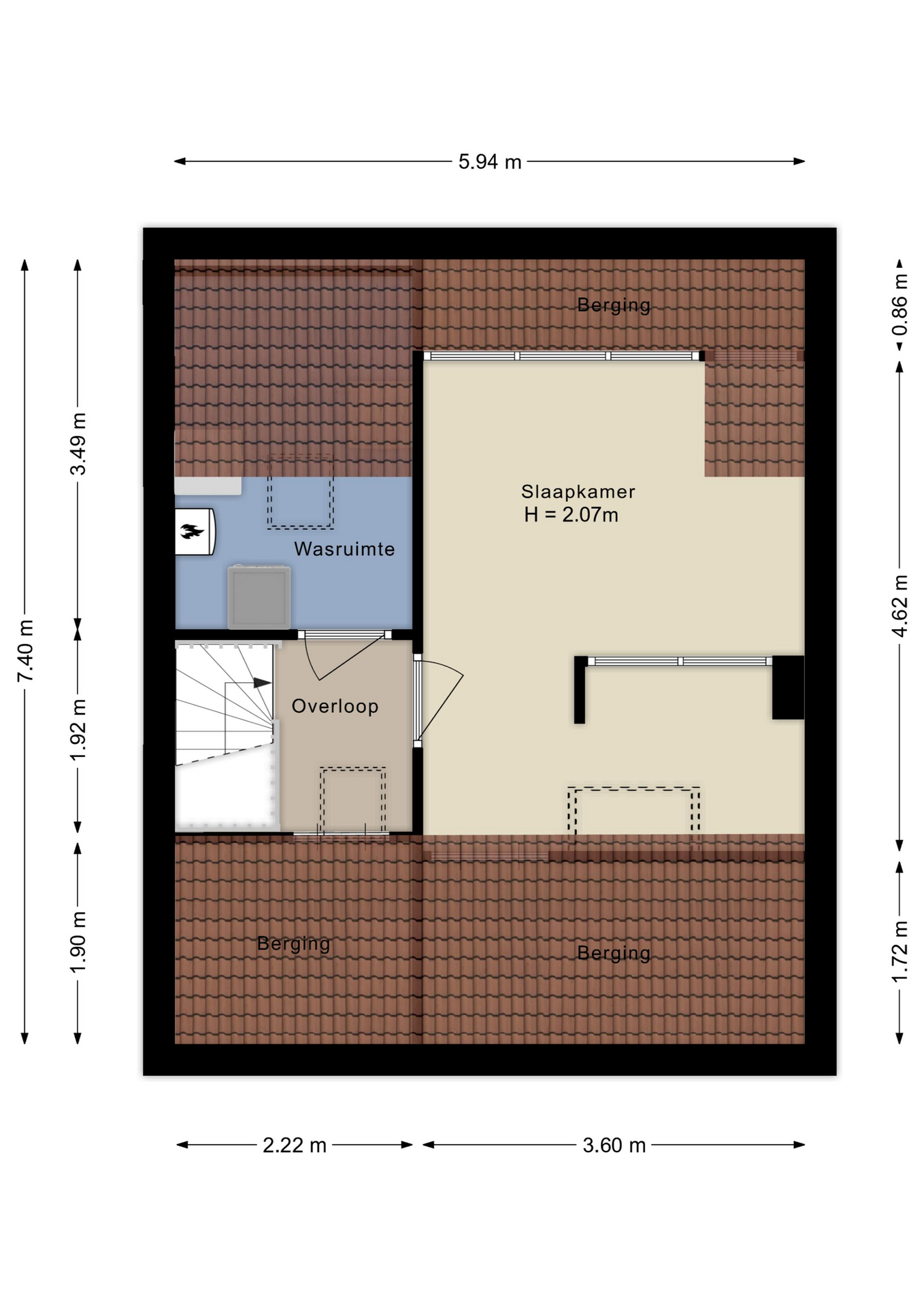 De tweede verdieping biedt nog meer mogelijkheden. Aan de voorzijde zorgen knieschotten niet alleen voor karakter, maar ook voor extra opbergruimte. Hier heb je een royale vierde slaapkamer, die perfect kan dienen als logeerkamer, thuiswerkplek of hobbyruimte. Daarnaast is er een aparte wasruimte én een berging, zodat ook je praktische spullen slim georganiseerd kunnen worden. Het dakraam zorgt bovendien voor een prettige natuurlijke lichtinval, wat de ruimte open en fris maakt.