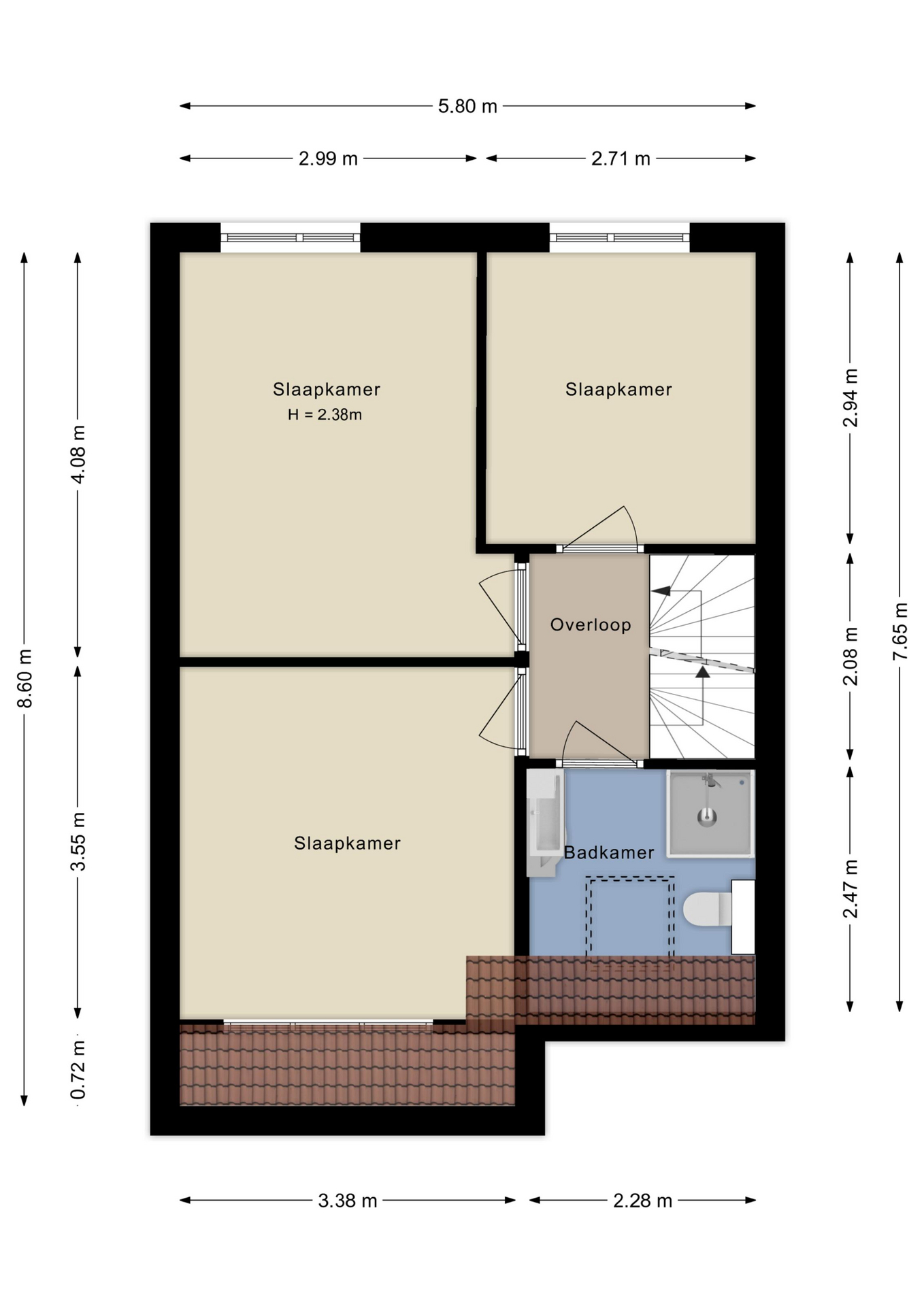 Eenmaal boven leidt de overloop je naar drie smaakvolle slaapkamers, elk met voldoende ruimte voor persoonlijke invulling. De badkamer is een parel op deze verdieping; met een comfortabele inloopdouche, een tweede toilet en een functioneel wastafelmeubel. Tevens beschikt de badkamer over veel natuurlijk licht.