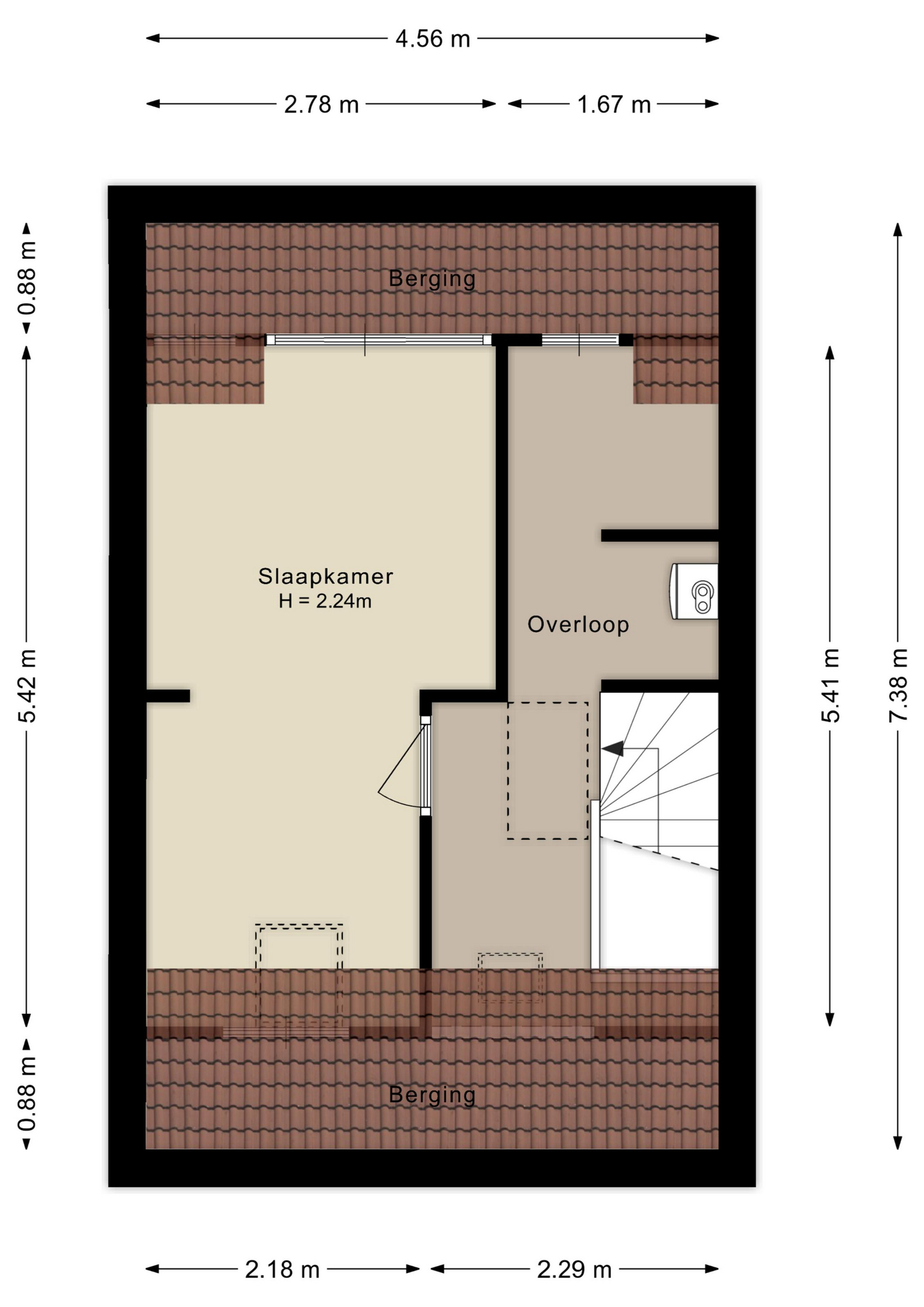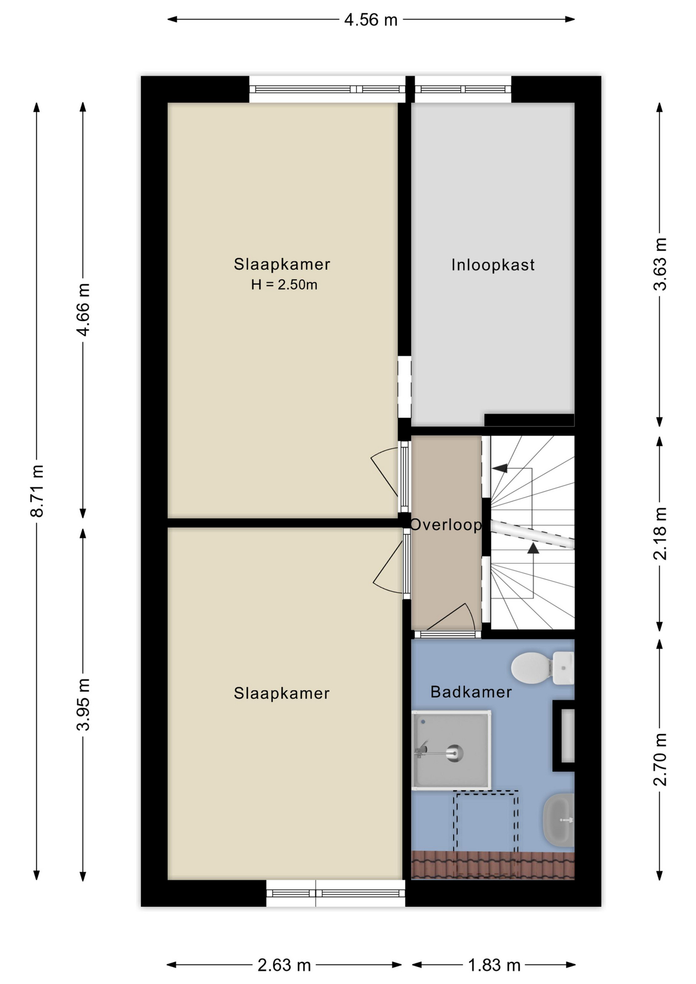 Drie slaapkamers op de eerste verdieping met een dakkapel aan de voorzijde die extra ruimte en licht biedt.