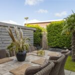 De achtertuin is geheel betegeld en kijkt uit over het water. Hier kun je ook een fijn zithoekje plaatsen en genieten van de zon!