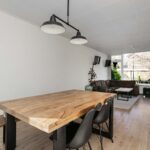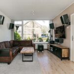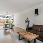 De doorzon woonkamer is heerlijk licht dankzij de grote raampartijen en biedt een vrij uitzicht aan zowel de voor- als achterzijde. Openslaande deuren en een schuifpui zorgen voor een directe verbinding met de tuin. De begane grond is afgewerkt met een nette laminaatvloer en lichte wandafwerking.