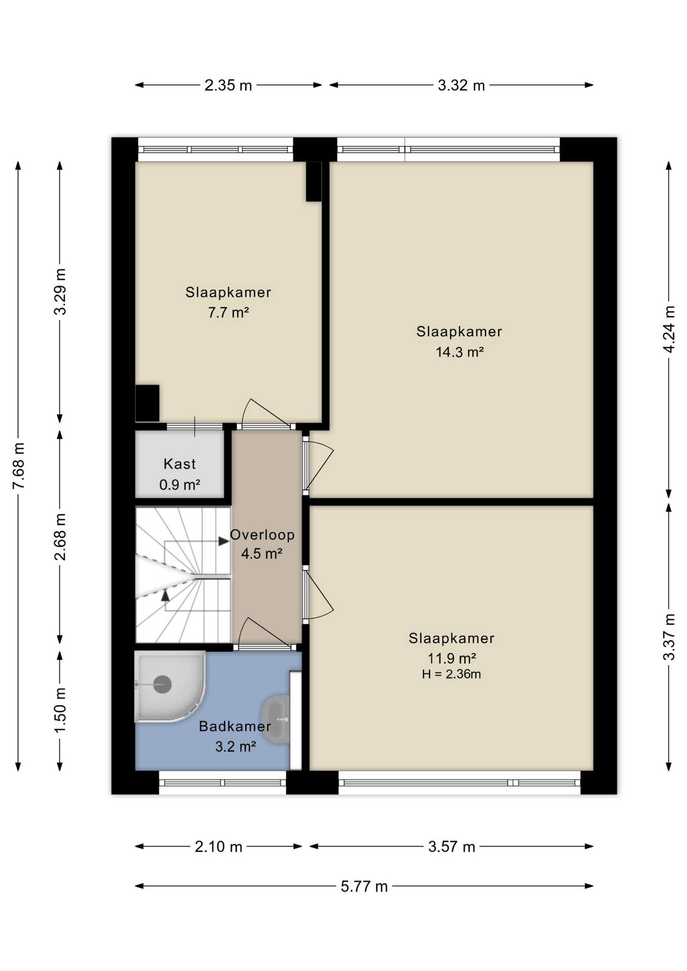 Op de eerste verdieping bevinden zich drie ruime slaapkamers, allen afgewerkt met een laminaatvloer en lichte wanden.