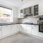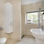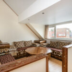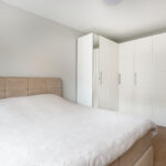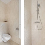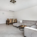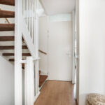 At the front of the house, you’ll find the kitchen, fitted with built-in appliances and ample workspace — ideal for cooking enthusiasts. The entire ground floor (except for the toilet) is fitted with underfloor heating. Under the stairs, there’s a practical storage cupboard for extra space.