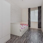Het hoekappartement bevindt zich op de eerste verdieping van het complex. Ruime entree/hal met meterkast. Grote inpandige berging met de benodigde aansluitingen voor de wasmachine en droger en veel opbergmogelijkheden. Separaat vrij hangend toilet met fonteintje. Volledig betegelde badkamer met douche en wastafel. Twee keurig afgewerkte slaapkamers met veel natuurlijk lichtinval. Aan het einde van de hal bevindt zich de woonkamer.