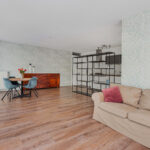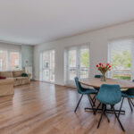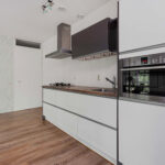 Door zijn hoekligging beschikt de woonkamer over extra raampartijen waardoor er veel natuurlijk licht de woning binnenkomt. De open keuken beschikt o.a. over een vaatwasser, koelkast, vriezer, combi-oven, 5-pitsgasfornuis en afzuigkap. Door zijn open indeling kan de woonkamer op diverse manieren worden ingedeeld. Er is voldoende ruimte voor zowel een zit- als eethoek. Vanuit de woonkamer krijg je toegang tot de loggia. Deze is gesitueerd op het westen en biedt ruimte voor een zitje.