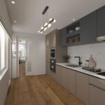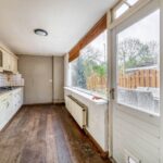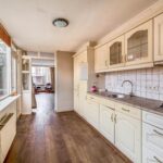 De keuken bevindt zich in de aanbouw aan de achterzijde van de woning en is voorzien van een standaard, recht keukenblok. Vanuit de keuken is er toegang tot de achtertuin.