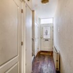 Entree, hal met eikenhouten vloerdelen, gestucte wanden en paneeldeuren, standaard afgewerkte toiletruimte met closet en fonteintje, meterkast, trapkast en trapopgang naar de 1e verdieping.