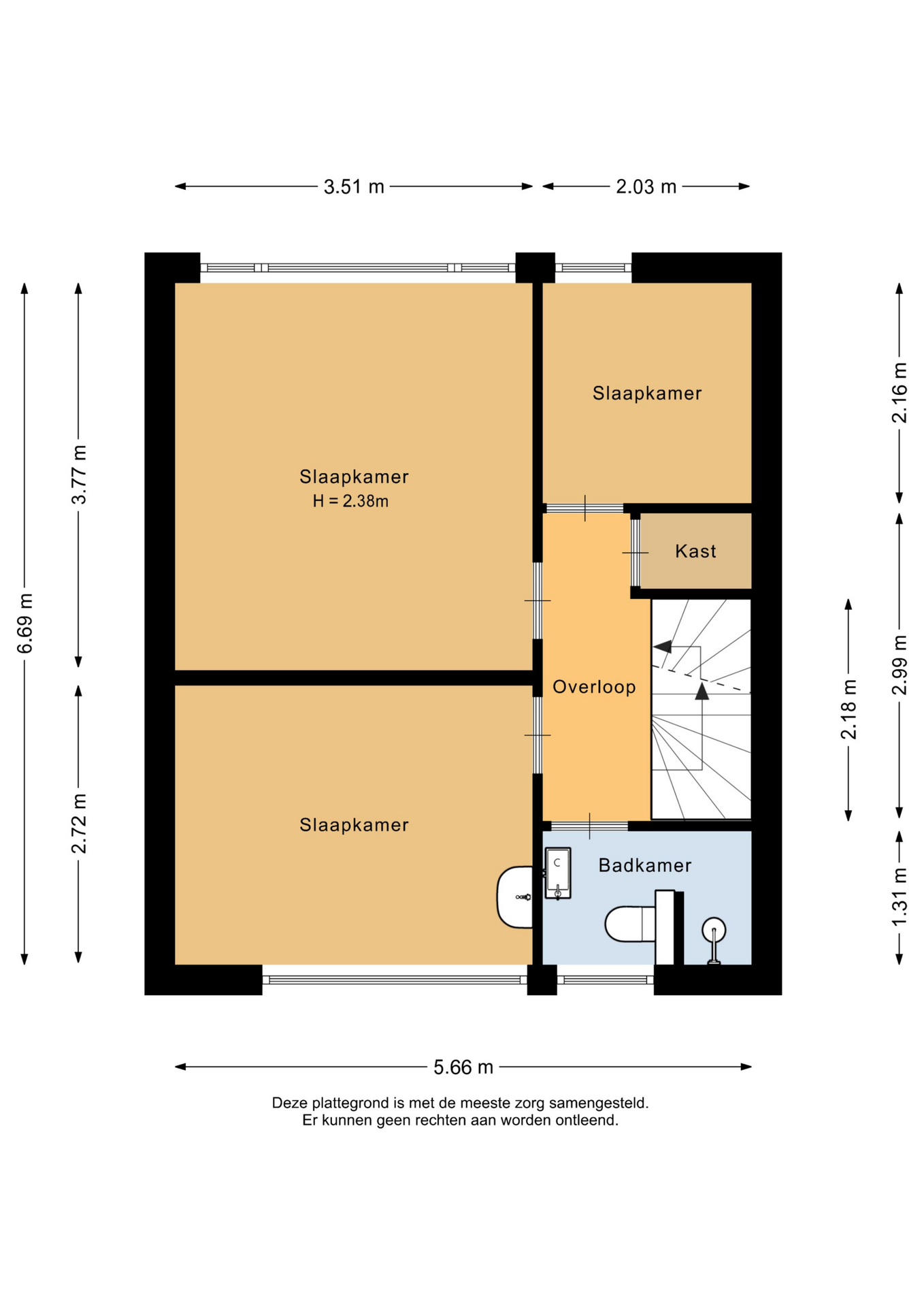 De 1e verdieping beschikt over drie slaapkamers van respectievelijk circa 13m², 10m² en 4,5m², die alle zijn voorzien van een vinylvloer en houten kozijnen met dubbele beglazing.