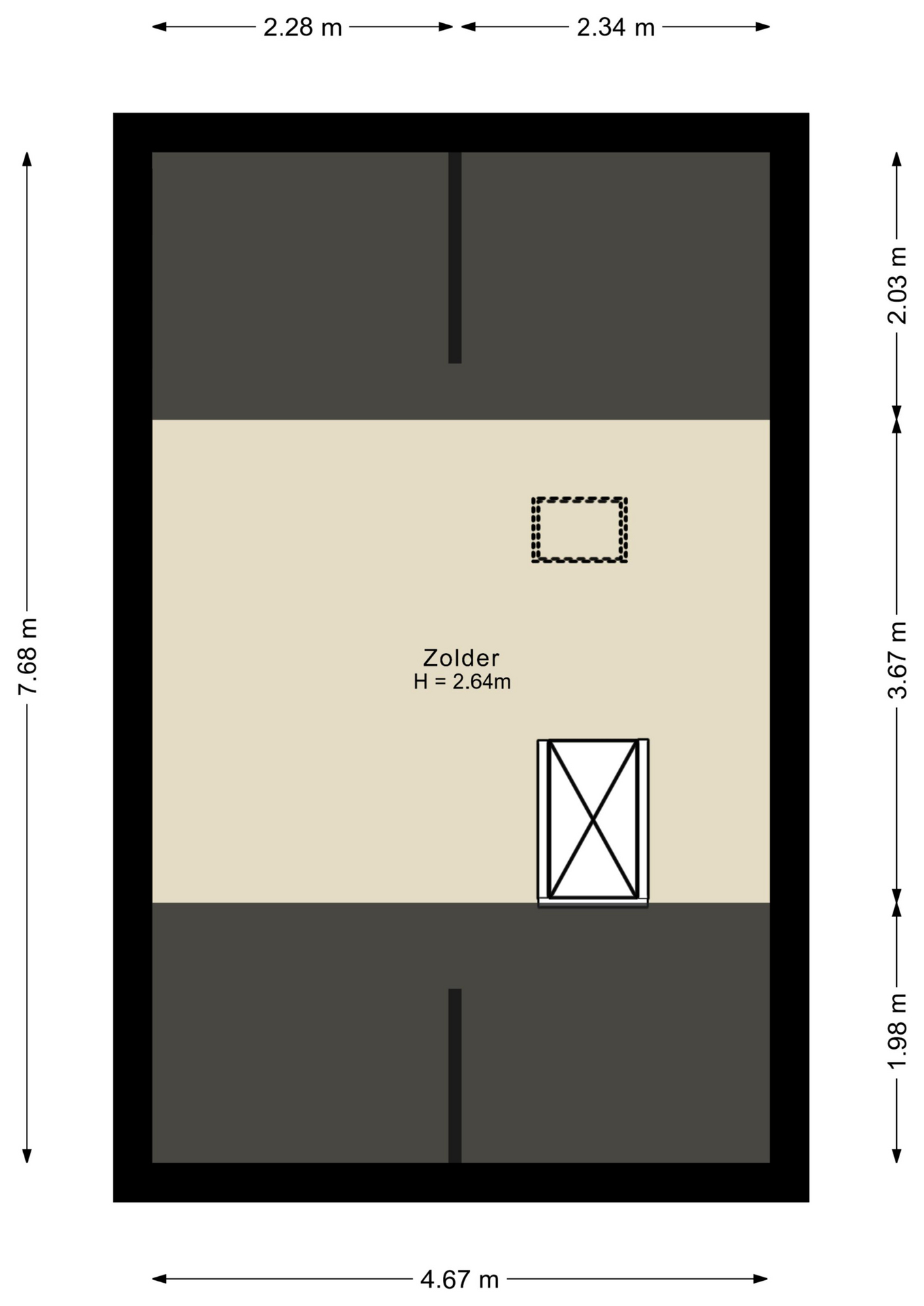 Te bereiken door middel van een vlizotrap. Open zolderruimte met dakraam en opstelplaats mv-unit.