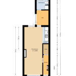 Gemeenschappelijke Entree, gang met meterkast, grote bergkast en deur naar de royale doorzon kamer met grote raampartij aan de straat (momenteel ingericht als slaapkamer) en een ruim woonkamer aan de achterzijde van de woning met openslaande deuren naar de zonnige stadstuin. De open keuken is onder de trap naar de bovenwoning gesitueerd. Voorbij de keuken heb je toegang tot een kleine studeerkamer c.q. kleedkamer met deur naar de tuin en toegang tot de badkamer met douche, toilet, wastafel en aansluiting voor wasmachine.
