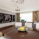 * Luxe keramische keuken met een inductiekookplaat en hoogwaardige inbouwapparatuur