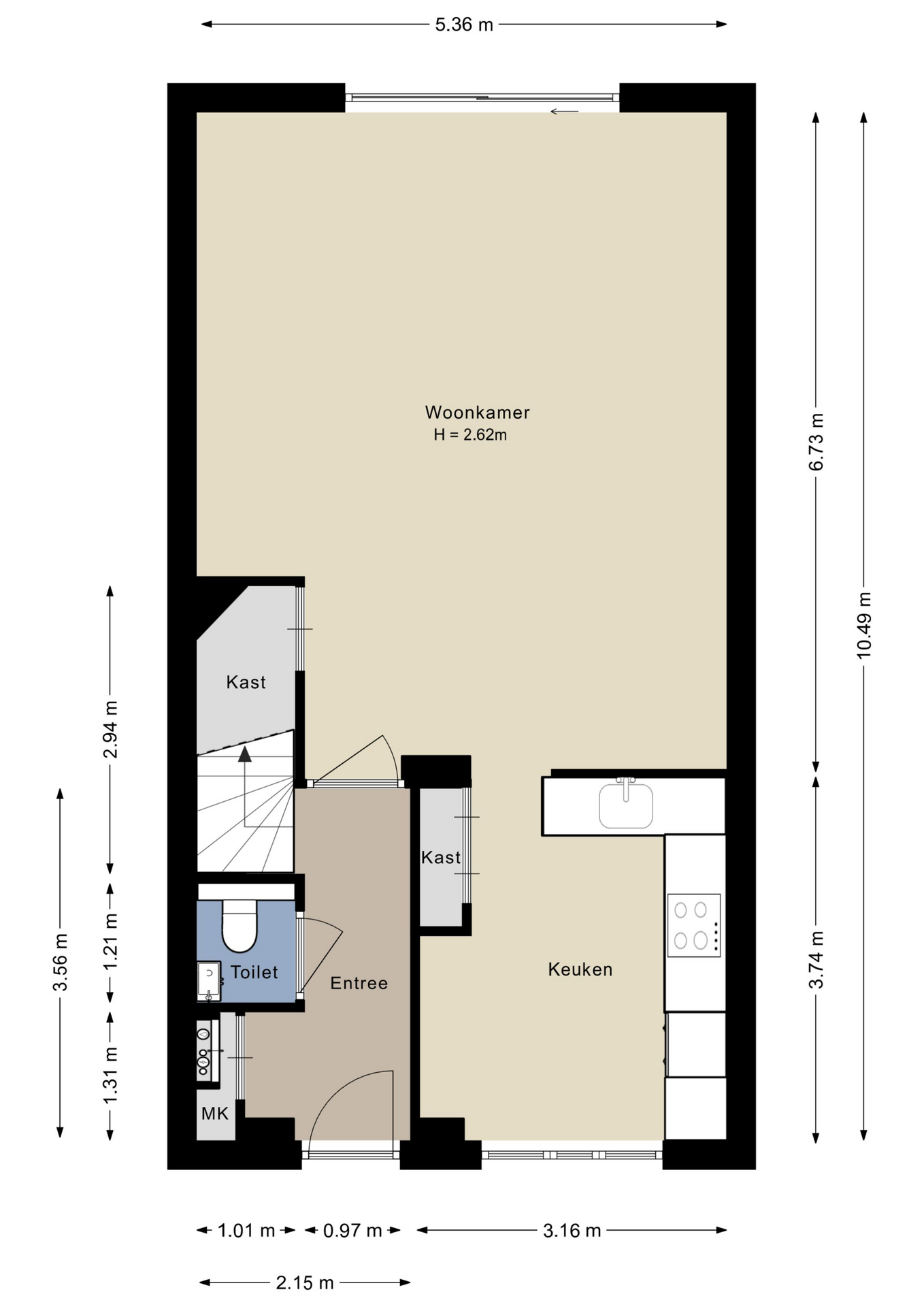 Je stapt binnen in een lichte en ruime hal met modern toilet, meterkast en trapopgang. De sfeervolle woonkamer is voorzien van kamerhoge raampartijen en openslaande deuren naar de zonnige tuin. De luxe open keuken is een echte eyecatcher en voorzien van een schiereiland, kastenwand en topkwaliteit inbouwapparatuur zoals een inductiekookplaat, combi-stoomoven, vaatwasser en koel-/vriescombinatie. De hele begane grond is voorzien van een stijlvolle tegelvloer met comfortabele vloerverwarming.