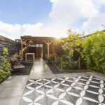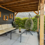 De achtertuin is een ware verrassing! Met een diepte van ruim 12 meter en een ligging op het zuidoosten geniet je de hele dag van de zon. De tuin is verzorgd aangelegd met bamboe, groen en sierbestrating, en achterin bevindt zich een fraaie overkapping/veranda met verlichting – perfect voor lange zomeravonden. Achterom bereikbaar via een poort en voorzien van een praktische berging. Bovendien is er direct achter de woning een privéparkeerplaats.