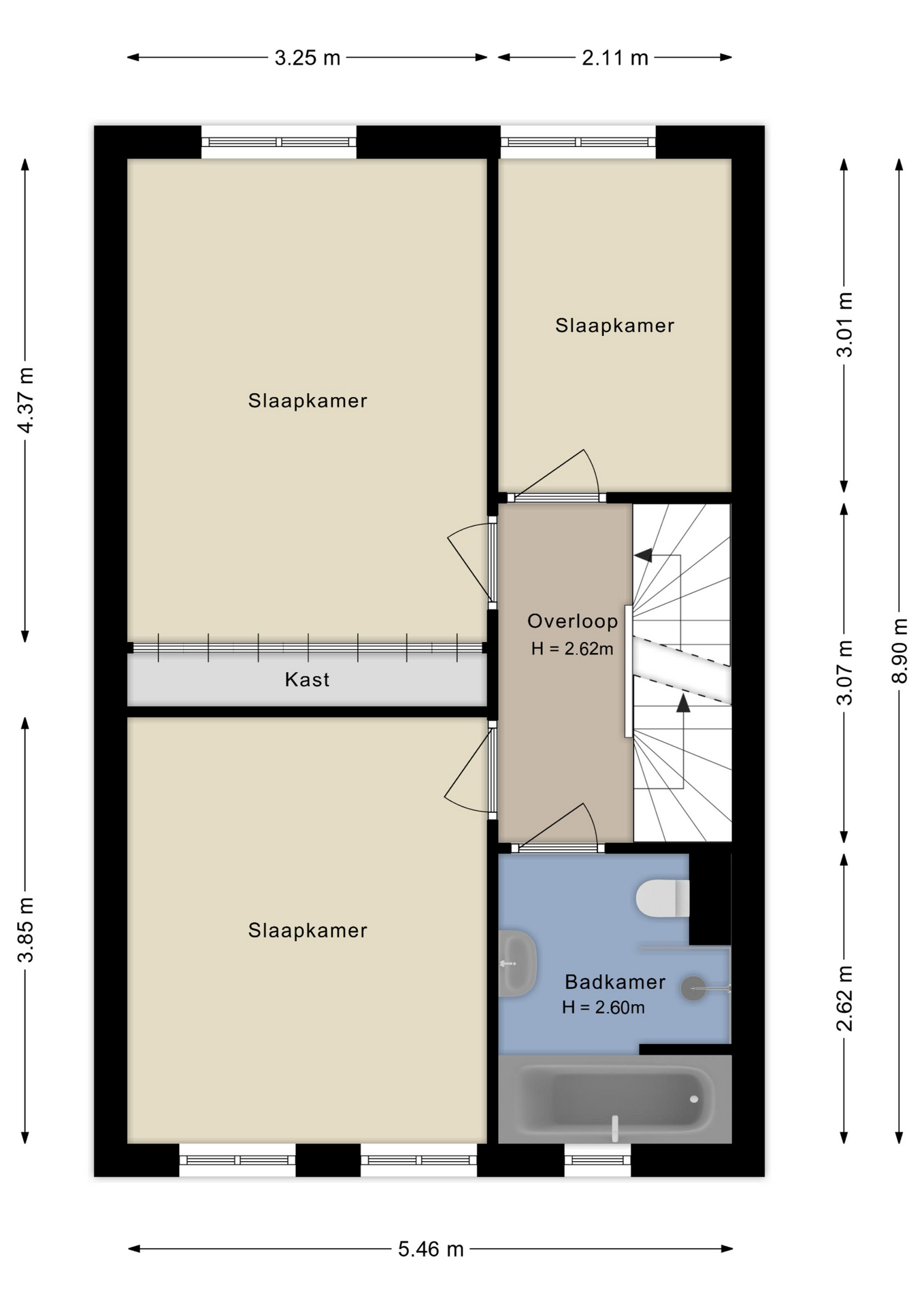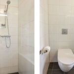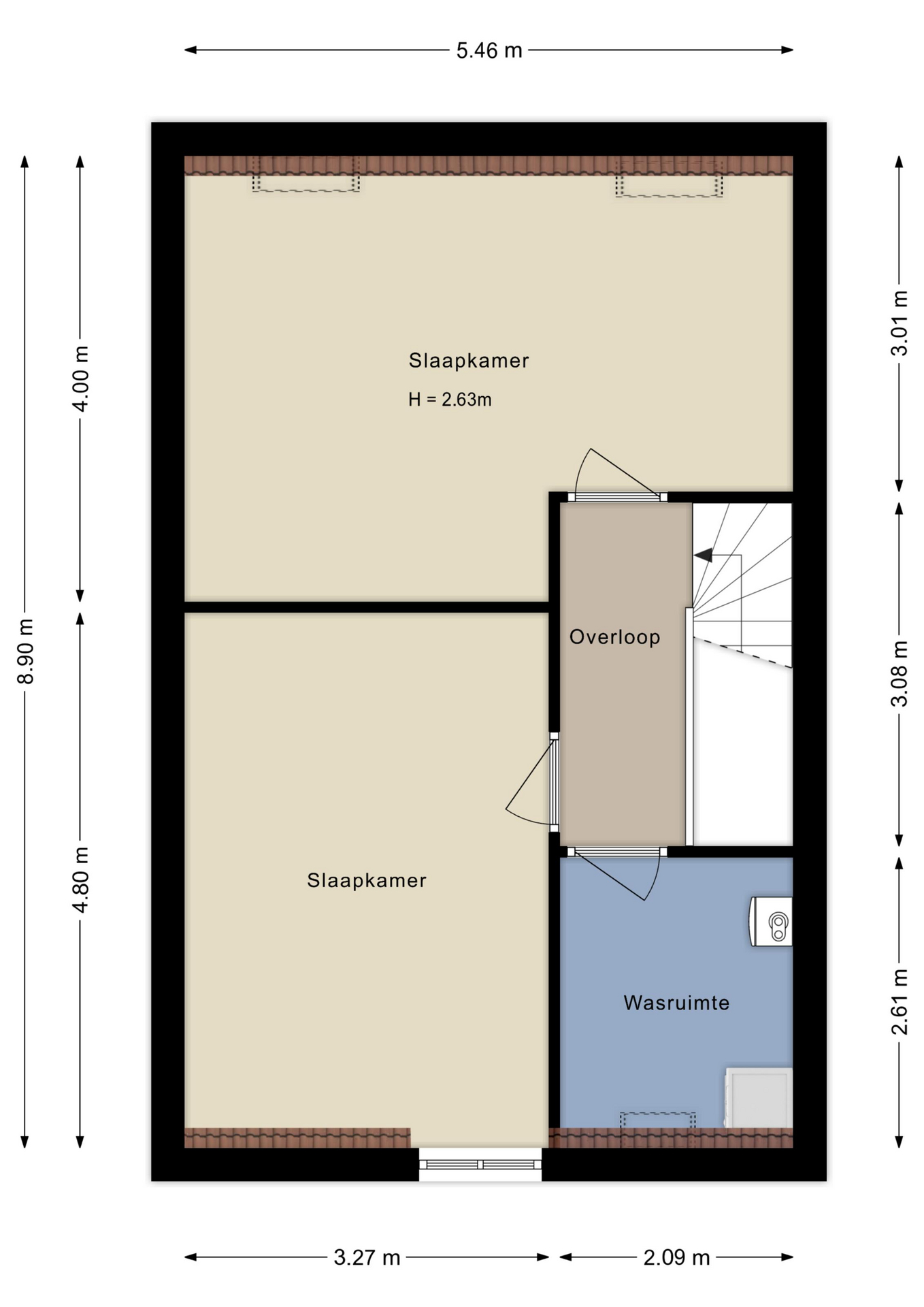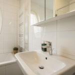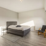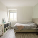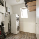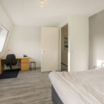 De bovenste etage biedt nog eens twee ruime slaapkamers, waarvan één met eigen wastafel en wastafelmeubel, beide volwaardige kamers die ook uitstekend kunnen dienen als logeer-, werk- of hobbyruimte. Daarnaast bevindt zich hier een aparte wasruimte met aansluitingen voor wasmachine en droger en een Velux dakraam voor extra ventilatie. Deze verdieping is netjes afgewerkt en praktisch ingedeeld. Dankzij de royale indeling is het tevens mogelijk om hier, indien gewenst, een tweede badkamer te realiseren.