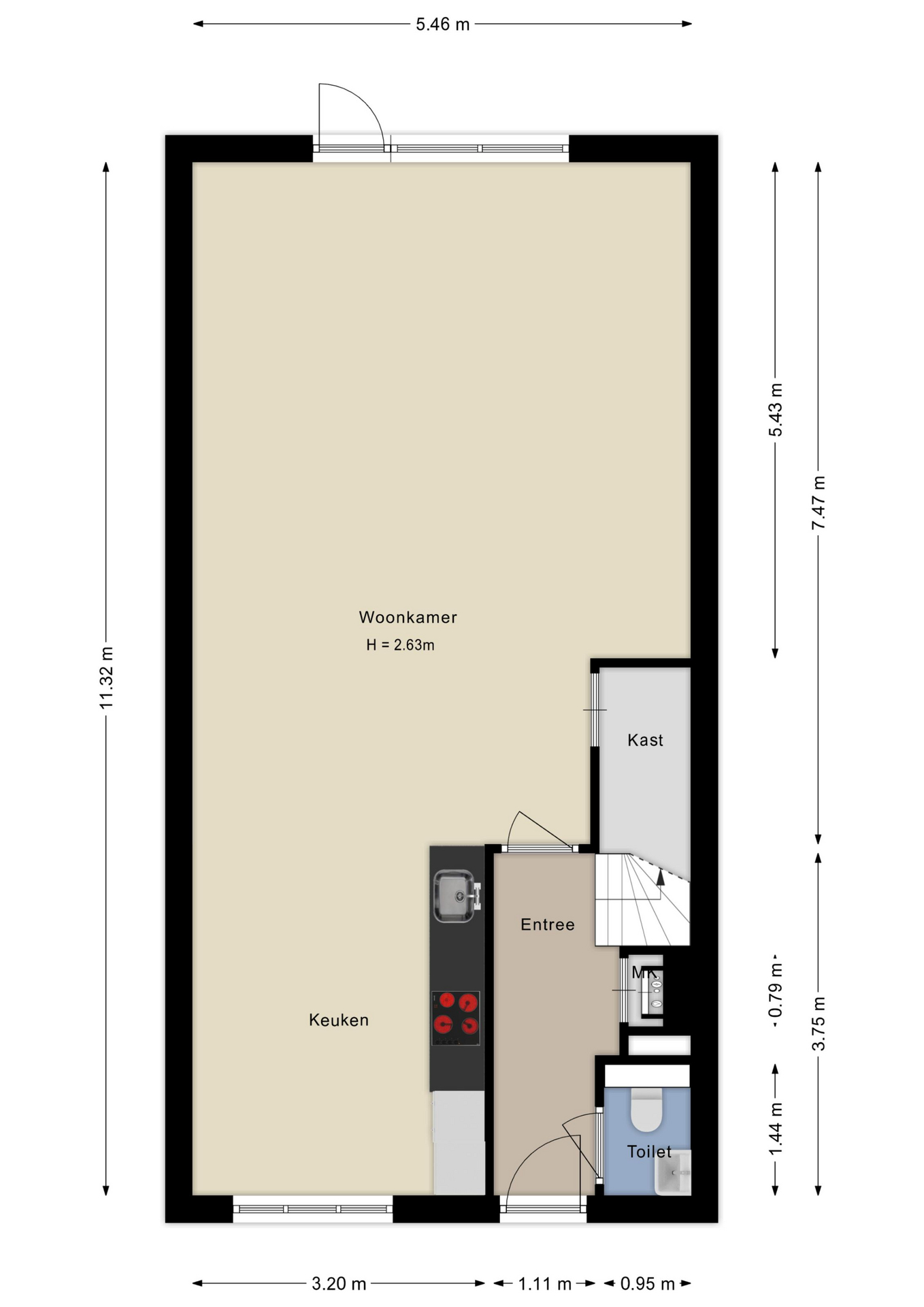 Via de verzorgde entree stap je binnen in een ruime hal met modern toilet, meterkast en trapopgang. De royale woonkamer is een heerlijke leefruimte, met grote ramen en deur naar de tuin, waardoor er veel daglicht binnen komt. Het plafond is voorzien van glad stucwerk en heeft het een mooi strak geheel. De open keuken aan de voorzijde heeft een moderne uitstraling en is uitgerust met hoogwaardige inbouwapparatuur, waaronder een inductiekookplaat, combi-oven/magnetron, vaatwasser en koel-vriescombinatie. De gehele begane grond is voorzien van een strakke tegelvloer in een houtlook variant met lange planken en met daaronder vloerverwarming, wat zorgt voor een aangenaam binnenklimaat het hele jaar door.