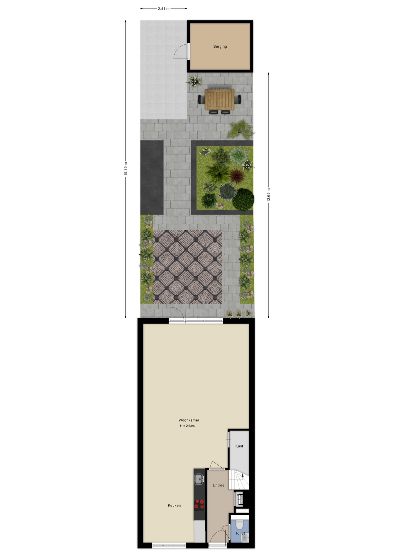 •	Eigen parkeerplaats direct achter de woning