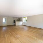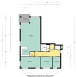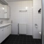 Indeling: Hal, ruimte voor CV-ketel en balansventilatiesysteem, toilet, badkamer met douchecabine, dubbele wastafel en toilet, ruime ouderslaapkamer (ca. 20 m²) met openslaande deuren, tweede slaapkamer (ca. 12 m²), werk-/logeerkamer (ca. 7½ m²), wasruimte, zeer ruime lichte woonkamer (ca. 60 m²) met deur naar op het zuiden gelegen tuin, open keuken (ca. 9 m²) voorzien van diverse inbouwapparaten.