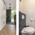 Entree met hal, meterkast en modern toilet met wandcloset en fontein. De woonkamer is tuingericht en heerlijk licht dankzij de grote ramen. Vanuit hier stap je zo de zonnige tuin in, compleet met overkapping, achterom, berging en zonnescherm. De open keuken is voorzien van een moderne opstelling inclusief 5-pits gaskookplaat, combi-oven, koelkast, afzuigkap en nieuwe Bosch vaatwasser (2024). De PVC vloer met vloerverwarming en de in 2025 nieuw aangebrachte plinten maken de luxe afwerking compleet.