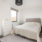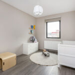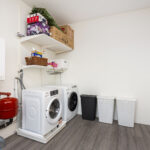 Ruime vierde slaapkamer aan de achterzijde. Aan de voorzijde bevindt zich een royale waskamer met CV-opstelling en volop ruimte voor wasmachine, droger of zelfs een tweede badkamer.