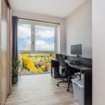 Vanaf hier heb je een geweldig vrij uitzicht over de stad. Het appartement is modern afgewerkt met oog voor detail; een strakke donkere keuken, luxe badkamer, fraaie tegelvloer met houtnerf en moderne wandafwerking. Daarnaast is het appartement volledig geïsoleerd, voorzien van comfortabele vloerverwarming en -koeling en heeft het een gebalanceerd ventilatiesysteem.