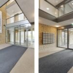 Entree met trapopgang, liftinstallatie, bellentableau en toegang tot de bergingen en de ondergelegen parkeergarage