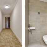 Entree, zeer ruime hal voorzien van elegant behang en mooie stalen deur in bronskleur met toegang tot de keuken en de woonkamer. In de hal bevindt zich de praktische bergkast met ruimte voor wasmachine en droger en de opstelling van de WTW installatie en warmtepomp en het luxe toilet met fontein, afgewerkt met mooie Italiaanse tegels. Riante, sfeervolle woonkamer met deur naar het ruime balkon gelegen op het zuidwesten, waar je heerlijk kunt genieten van de middag- en avondzon en het weidse uitzicht over de binnenstad van Amersfoort!