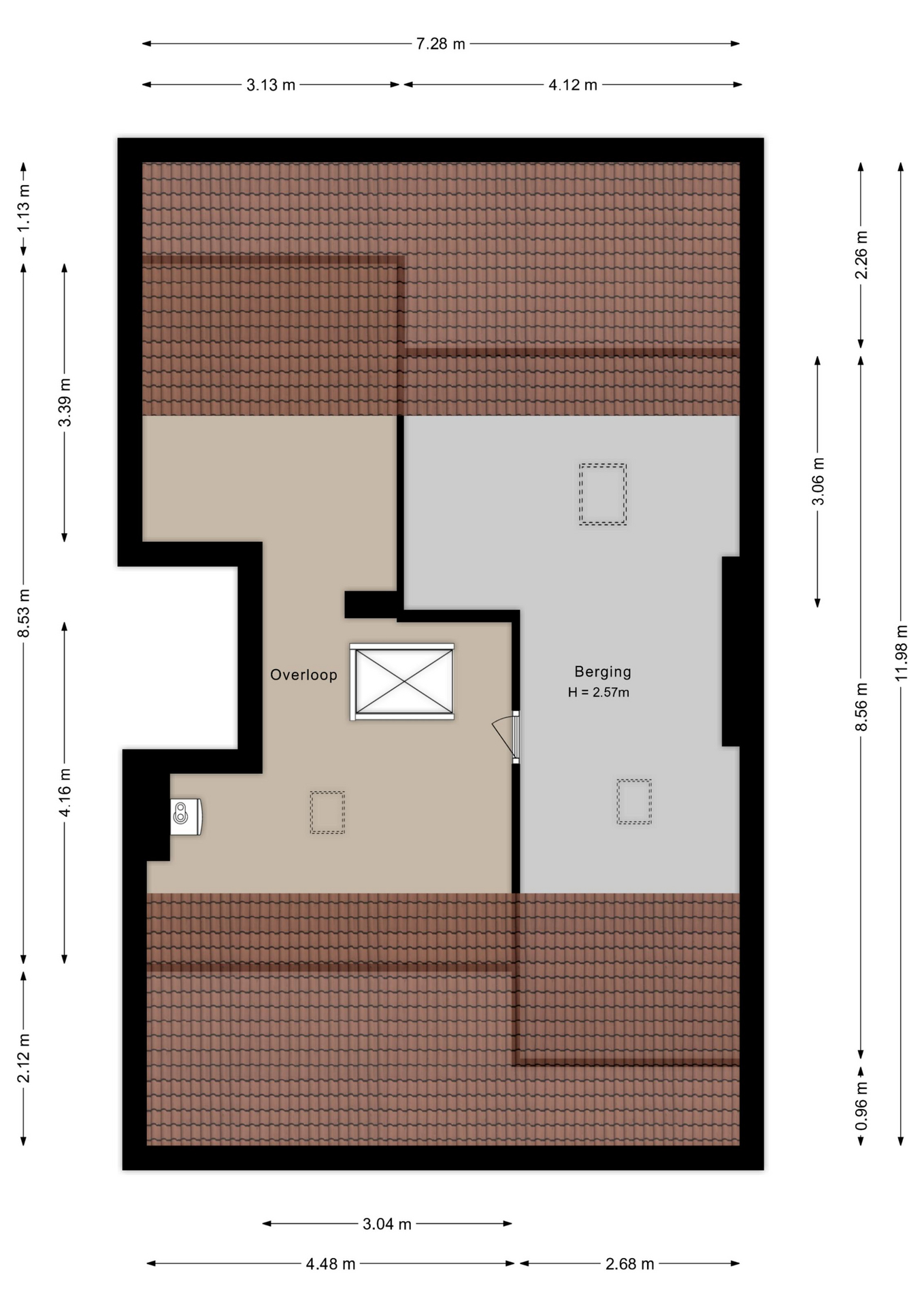 - Grote zolderverdieping met veel mogelijkheden.