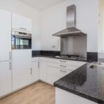 De woonkamer staat in halfopen verbinding met de keuken, die is voorzien van een modern keukenblok in U-opstelling met granieten aanrechtblad en Siemens inbouwapparatuur, te weten; koel-/vriescombinatie, gaskookplaat, combimagnetron, RVS-recirculatiekap en een vaatwasser. Naast de keuken bevindt zich een praktische bergkast.