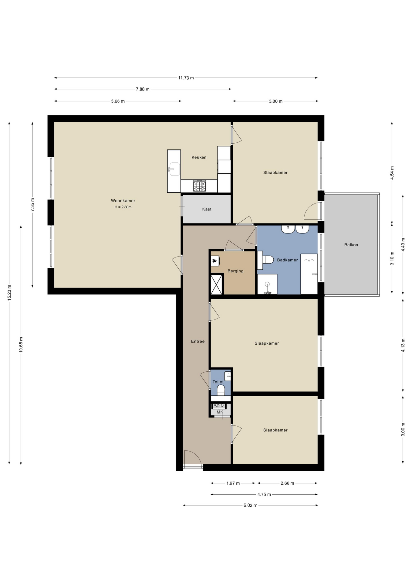 - Woonoppervlakte circa 133m², inhoud circa 451m³ en balkon circa 11 m²;