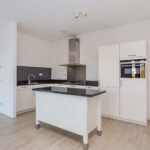 De woonkamer staat tevens in open verbinding met de keuken, die is voorzien van een L-vormig keukenblok met granieten aanrechtblad en Siemens inbouwapparatuur, te weten: koel-/vriescombinatie, gaskookplaat, combimagnetron, RVS-recirculatiekap en een vaatwasser, alsmede een klein werkeiland met granieten blad en bergruimte.