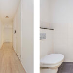 Entree, hal met videofoon, meterkast, garderobekast en modern afgewerkte toiletruimte met hangend closet en fonteintje.