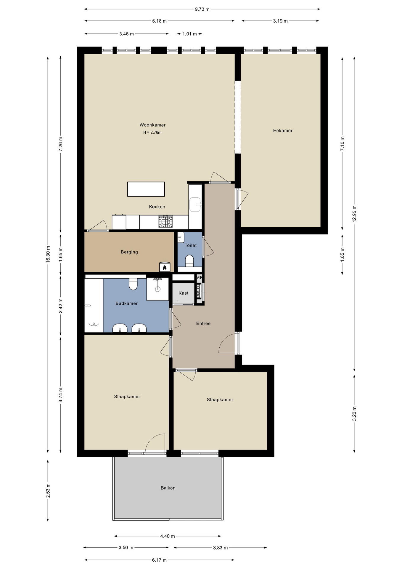 - Woonoppervlakte circa 130m², inhoud circa 433m³ en balkon circa 11m²;