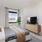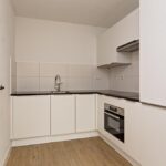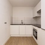 De woonkamer is een fijne, lichte ruimte met strak afgewerkte wanden, een laminaatvloer en openslaande deur naar het terras. De open keuken is praktisch in een hoekopstelling geplaatst en voorzien van diverse inbouwapparatuur: een inductiekookplaat, combimagnetron, koelkast, vriezer en een vaatwasser. Zo heb je alles bij de hand voor dagelijks gemak of een uitgebreid diner.