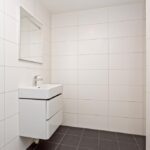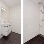 Aan de voorzijde liggen twee ruime slaapkamers, beide keurig afgewerkt met laminaat. De badkamer is uitgerust met een moderne douche, een stijlvol wastafelmeubel, een designradiator en de aansluiting voor de wasmachine. Het toilet is separaat en beschikt over een hangend closet en een fontein.