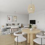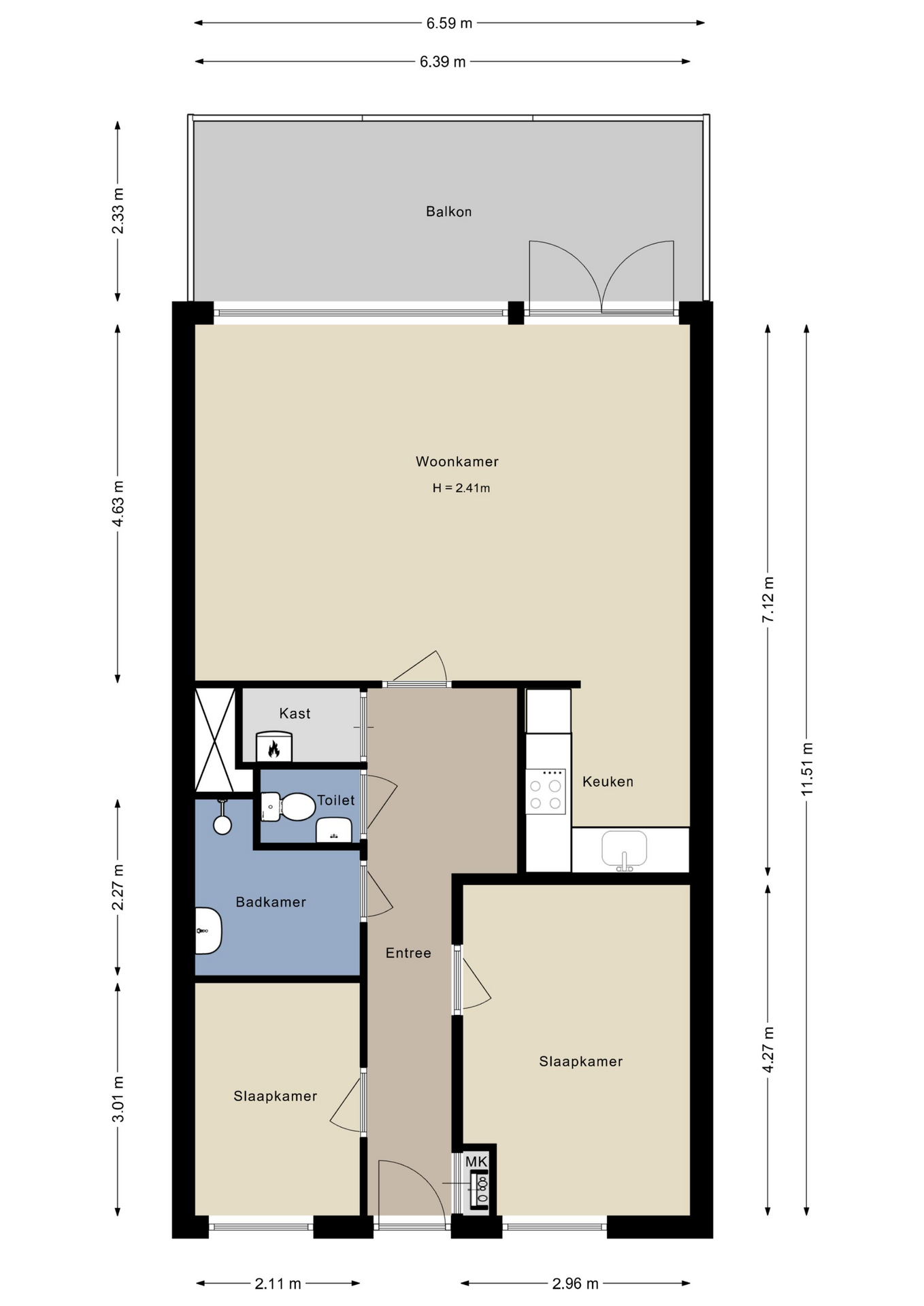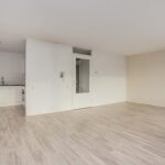 De woonkamer is ruim en licht dankzij grote raampartijen en openslaande deuren naar het balkon. Het balkon is een fijne plek om buiten te zitten. De open keuken is geplaatst in een hoekopstelling en voorzien van een modern composiet werkblad. Je vindt hier alle gewenste inbouwapparatuur: een inductiekookplaat, afzuigkap, combi-oven, vaatwasser en een koel-/vriescombinatie.